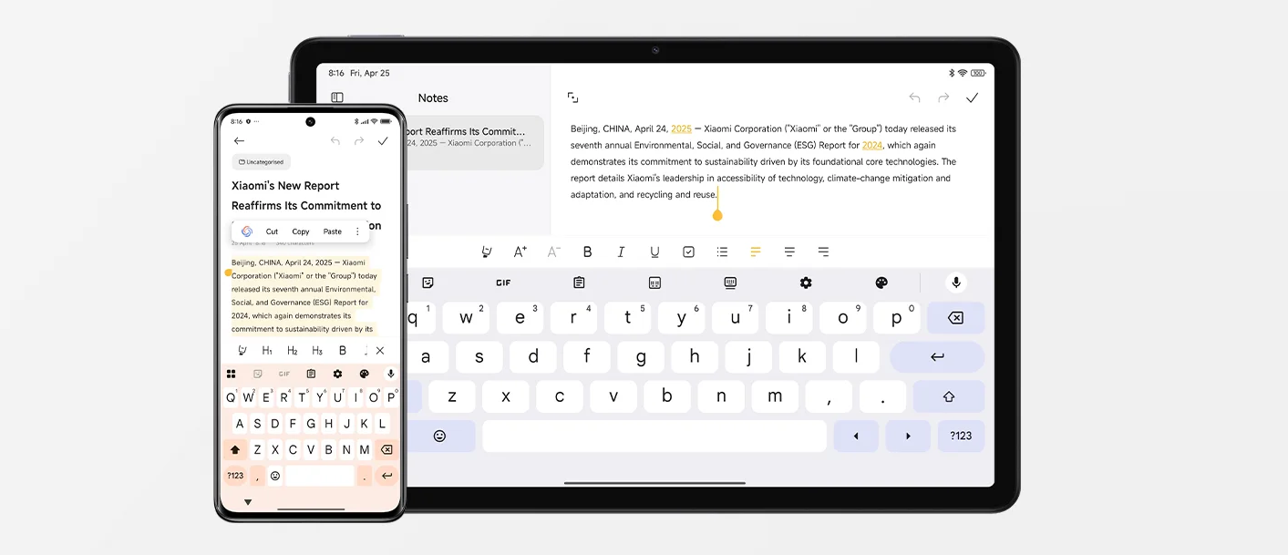 Помимо развлечений, планшет Redmi Pad 2 4G обеспечивает удобство решения рабочих задач с HyperOS 2, предоставляя улучшенный программный интерфейс. Синхронизация вызовов, сетевое объединение и общий буфер обмена через Wi-Fi и Bluetooth еще больше оптимизируют коннект со смартфонами. Принимайте входящие телефонные вызовы непосредственно на планшете и плавно переключайте голосовые вызовы между устройствами, а также свободно копируйте и вставляйте текст и изображения между устройствами так, как если бы он находились на одном гаджете. Это позволяет добиться более плавного и эффективного рабочего процесса с оперативным выполнением задач в течение дня.